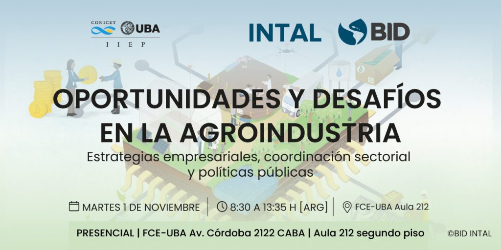 Carlos Aggio, investigador del CIECTI, participó del evento “Oportunidades y desafíos en la Agroindustria: Estrategias empresariales, coordinación sectorial y políticas públicas” organizado por el Instituto Interdisciplinario de Economía Política (IIEP UBA-CONICET), el Banco Interamericano de Desarrollo (BID) y el Instituto para la Integración de América Latina y el Caribe (BID-INTAL). Aggio conformó el panel sobre “Coordinación de Sistemas Agroalimentarios”, junto a Sofía Stemberg (BID), Florencia Jaureguiberry (Universidad N. de Rio Negro), Carlo Ferraro, Roberto Bisang (IEP-UBA-CONICET) y quien estuvo a cargo de los comentarios, Silvina Carles Campos (CONINAGRO). Durante el transcurso de la jornada se presentaron trabajos de investigación que forman parte del informe “Competir en la agroindustria: Estrategias empresariales y políticas públicas para los desafíos del siglo XXI”, recientemente publicado por el BID.
